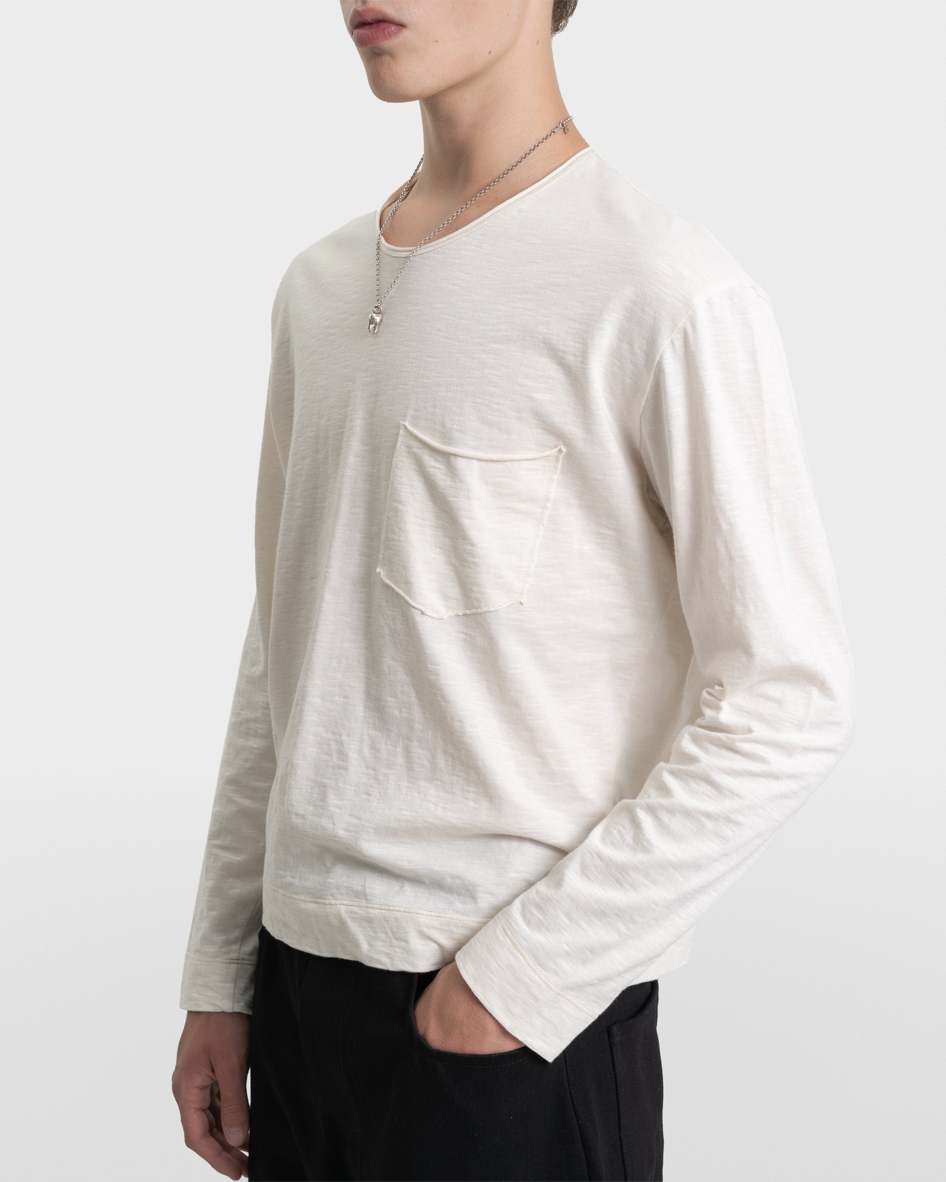 Effortless minimalism - a lightweight longsleeve tee with a slim fit and chest pocket detail. Designed for understated everyday style.